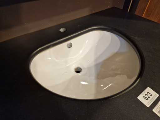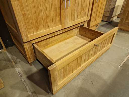 Mobilier de salle de bain en teck ligne teck Milano 95cm avec granit noir - lavabo en porcelaine - mobilier suspendu en teck de qualité A avec tiroir au sol (peut aussi être suspendu)