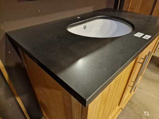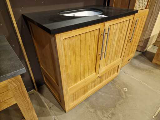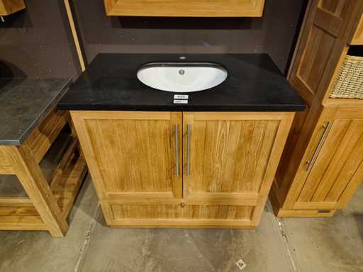 Mobilier de salle de bain teck line-teck Milano 95cm avec granit noir