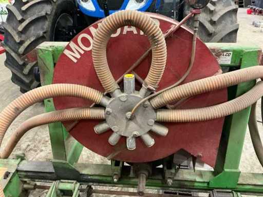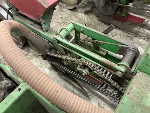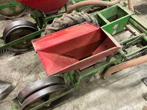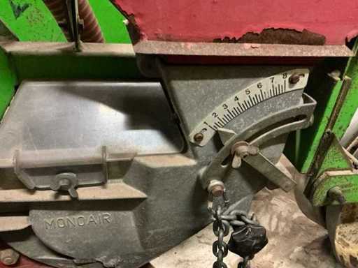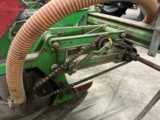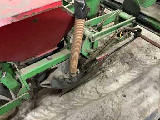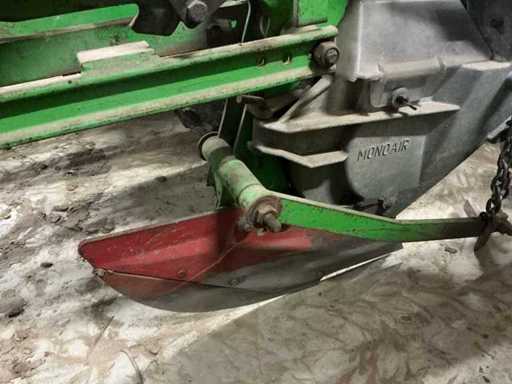 Comprend : Semi de précision Monosem MONOAIR à 4 rangées avec marque, équipé de 4 éléments de semis et entraînement mécanique par chaîne, la machine est équipée d’un système pneumatique de distribution des graines (système MONOAIR), version 4 rangées, espacement réglable, entraînement mécanique avec transmission à chaîne, incluant plusieurs disques de semis : 4xType 3255 (maïs), 4xType 0835 (citrouilles), 2xType 3210 (betteraves), 2xType 4830 (haricots), chaîne supplémentaire et pignons inclus, avec tuyaux d’air et éléments de semis, Largeur de travail 3000 mm, avec supports.