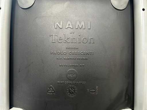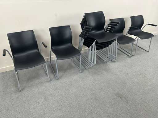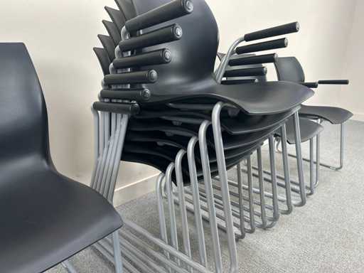 Un ensemble de 10 chaises de conférence NAMI empilables de couleur noire, dont 2 sans accoudoirs. Avec des signes d’usure, l’état peut varier d’un article à l’autre.