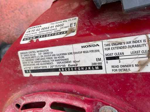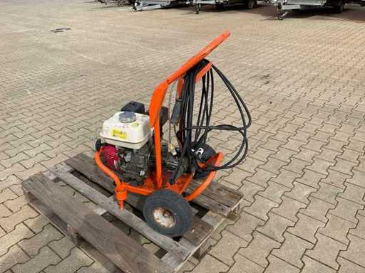 consommation de 650 litres/heure ; équipée d’un moteur Honda GX 160 ; tuyau haute pression ; ne fonctionnant pas ;