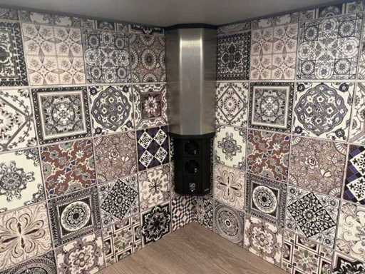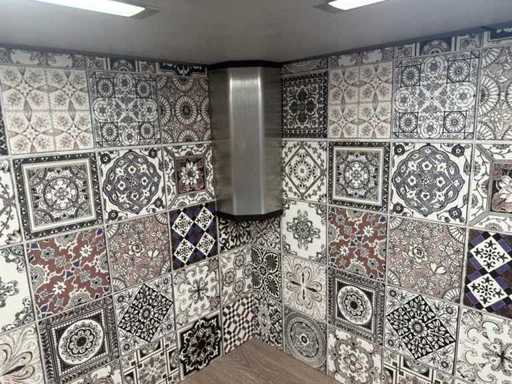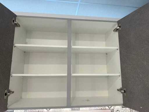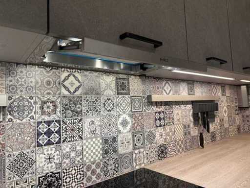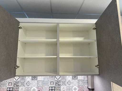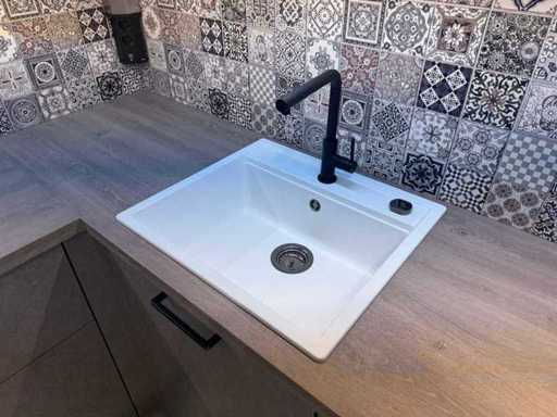 Dimensions : partie gauche : environ 328x60x98 cm ; dimensions : partie droite : environ 248x60x230 cm ; la cuisine doit être démontée sur place ; sans table ni chaises