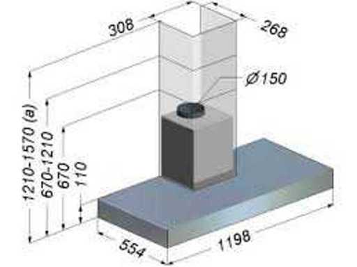 Hotte extractrice, paroi, capuchon extracteur. : 1080 m³/heure, acier inoxydable, 120 cm