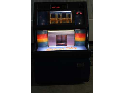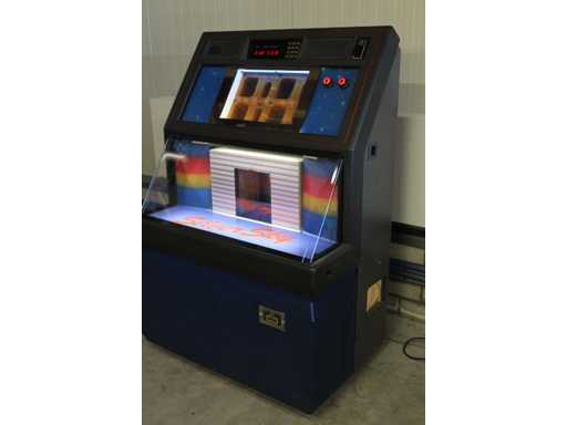 Juke-box de 100 CD, avec cartons-titres changeants, effets sonores et lumineux stéréo, affichage numérique