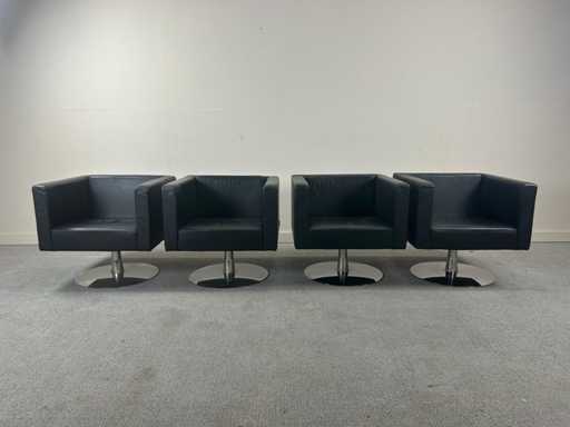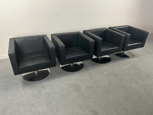Lot de 4 fauteuils club Offect noirs avec pied central en métal. Quelques légers signes d’usure.