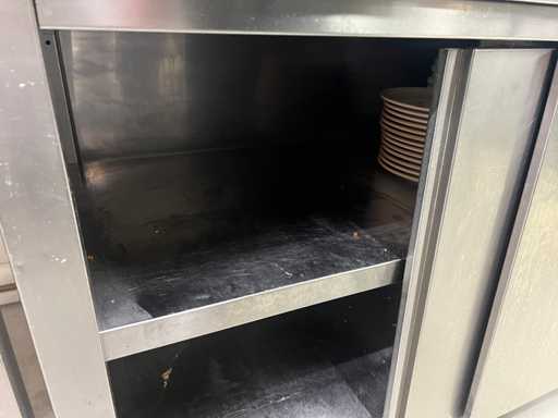 Version : meuble bas chauffant avec portes coulissantes, adapté au préchauffage des plats ou au maintien au chaud des préparations
