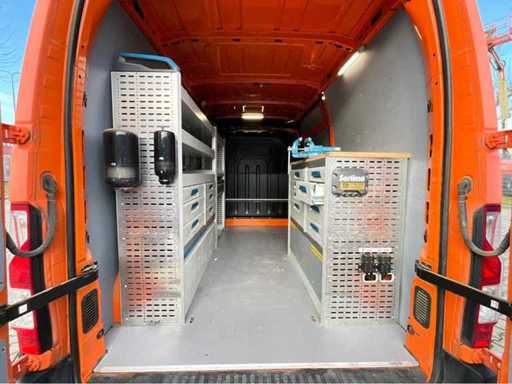double porte de chargement arrière ; espace de chargement côté passager à porte coulissante ; équipée d’un dispositif d’espace de chargement avec rack de chargement en acier/bois à gauche et à droite ; barre de remorquage ; des lampes de signalisation ; conditions de travail ; les papiers d’enregistrement allemands ; certificat de conformité ; (VIE-PB683)