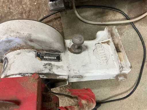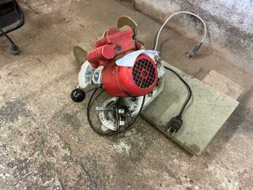 Avec une coupeuse à chaîne Stihl et une meuleuse Hanning pour établi.