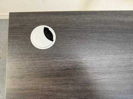 Atelier PAMI, équipé d’un dessus en chêne anthracite, avec entrée à câble, base en métal gris