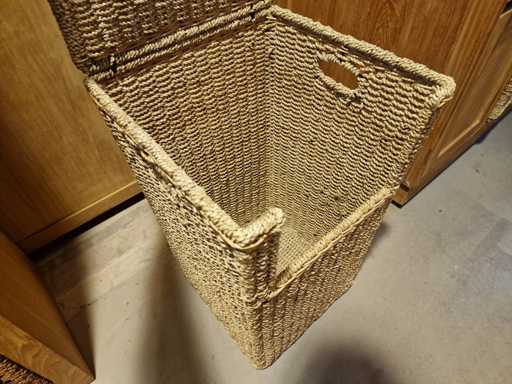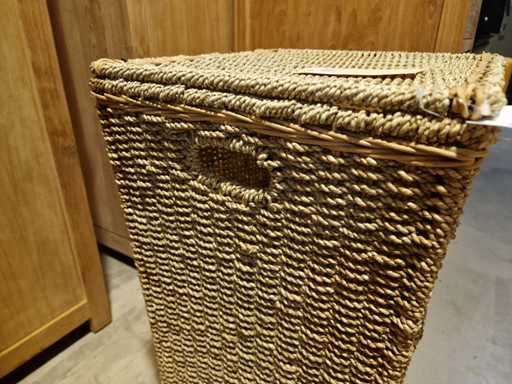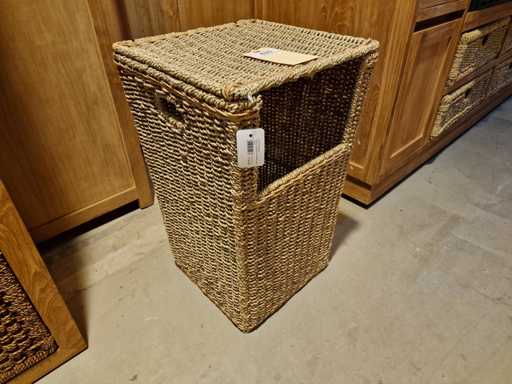 Panier en herbiers marins en ligne de teck avec couvercle de 40 cm et ouverture