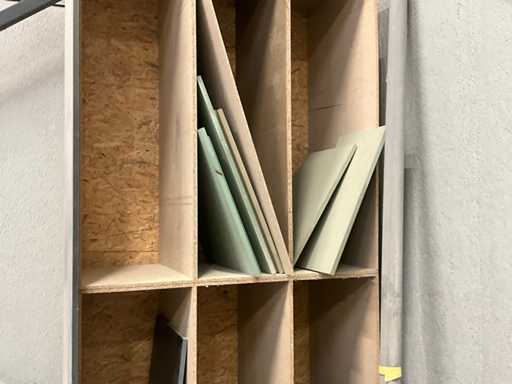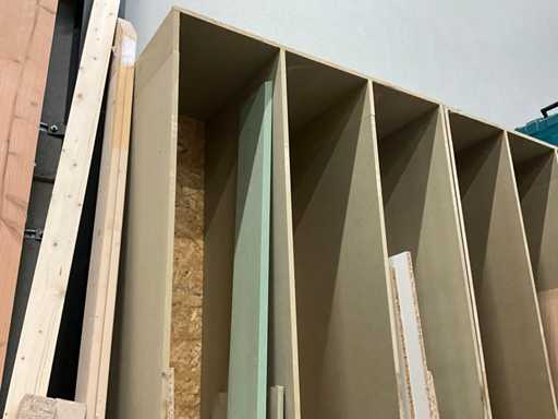 Couché dans 3x armoire de rangement en bois de dimensions 1200 x 600 x 3180, complète avec 2 x support de rangement en bois de dimensions 1220 x 600 x 2850mm