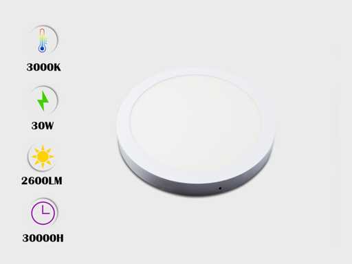 Panneau LED – Montage en surface – 30W – 3000K – Blanc chaud (x10)