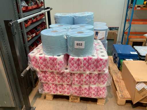 Nombre de rouleaux de papier toilette par paquet : 24 rouleaux - dont 24 rouleaux de nettoyage - le lot est sur le sol