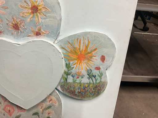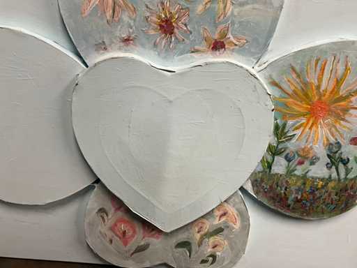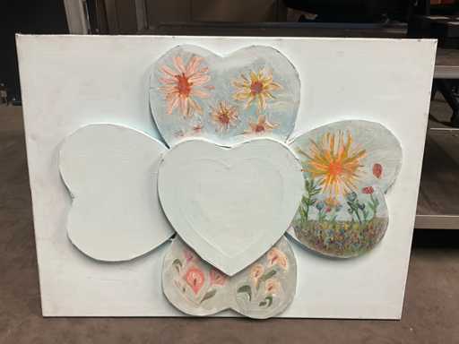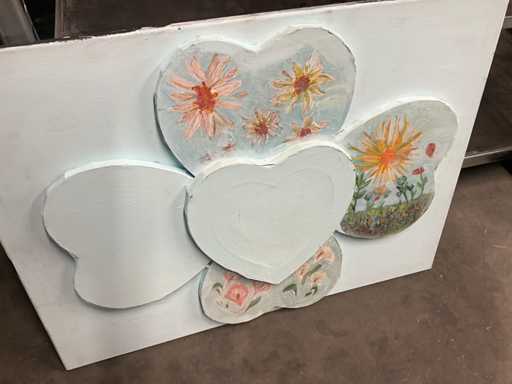 Acrylique sur toile, représentant des cœurs, y compris sur le dessus.