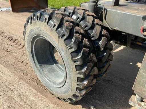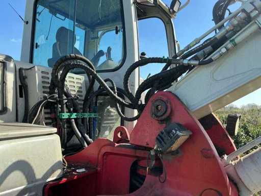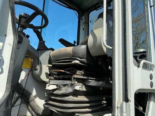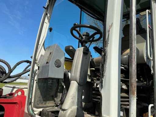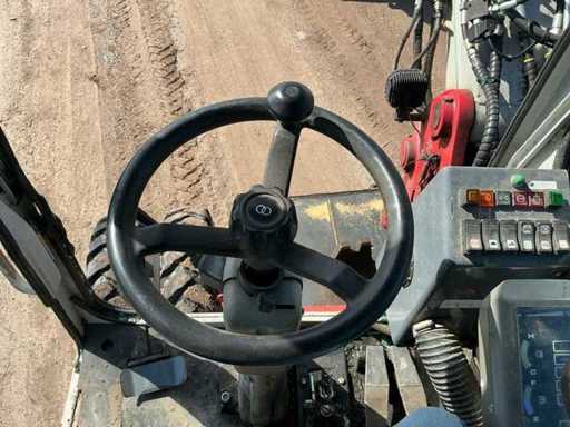 Équipé de : lame coulissante, attelage rapide hydraulique, fonction marteau/tri, éclairage de travail, boîte de rangement latérale 2x, barre de remorquage, siège avec suspension pneumatique, différentes vitesses de conduite, radio, plaque d’immatriculation NL