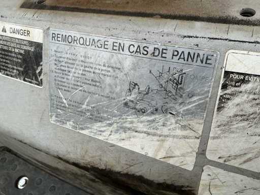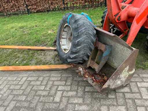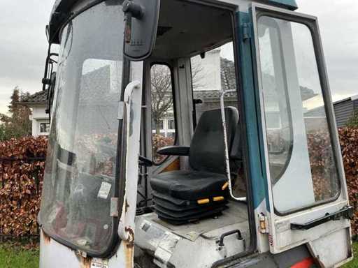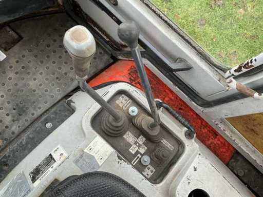 Entraînement : 4x4 permanent, Direction : Direction articulée, Vitesse maximale : 15–20 km/h, Refroidissement : Refroidissement par eau, Type de transmission : Hydrostatique, Changement de direction de course : Avant/arrière via joystick ou levier, Système hydraulique, Pompe hydraulique Sortie : ± 40–45 l/min, Pression de travail : ± 160–180 bar, Capacité de charge : Charge de basculement (en ligne droite) : ± 1 500 kg, Charge de basculement (inclinée) : ± 1 200 kg, Hauteur de levage : ± 2 900 mm. Comprend un godet, des fourches et une roue de secours.