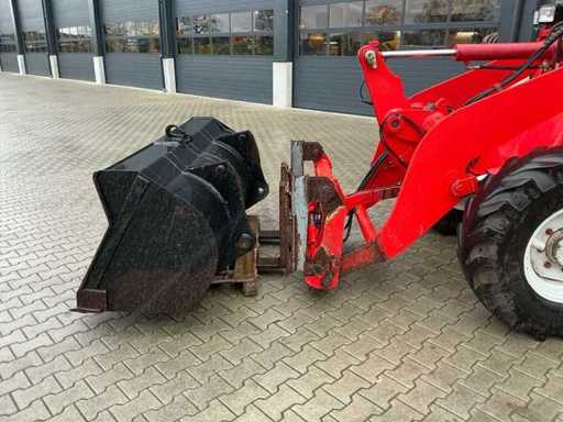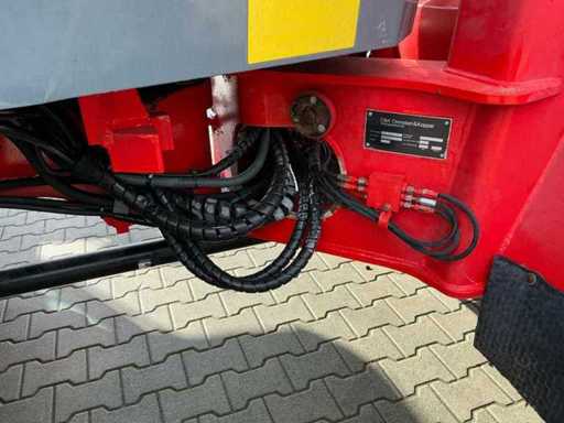 Équipé de : attelage rapide hydraulique, affût fourchette avec fourches 900 mm, connexion auxiliaire à l’avant, lubrification centrale, éclairage, feux de travail LED, barre de remorquage,