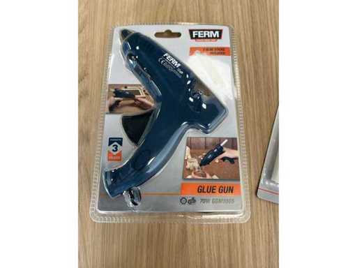 Pistolet à colle électrique de la marque FERM, puissance 70W. Adapté aux bâtonnets de colle de Ø11 mm.