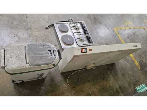 Placard, hotte extractrice et poubelle