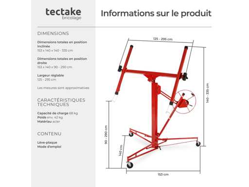 Hauteur minimale / maximale : environ 140 cm / environ 335 cm.