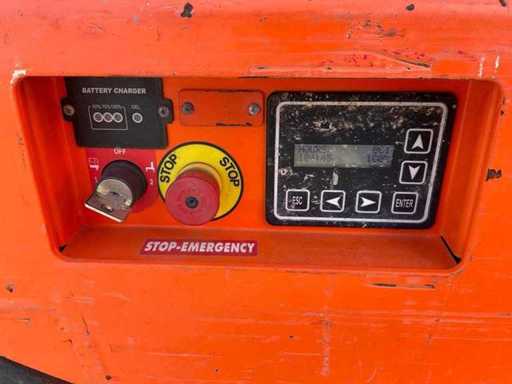 acier ; hauteur maximale du quai au sol 2900 mm ; contrôle de cage ; étagère extensible 1650x600 mm ; chargeur de batterie intégré ; 230 volts ; fentes pour fourches élévateurs ; conditions de travail ;