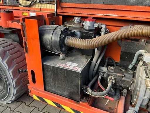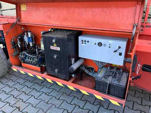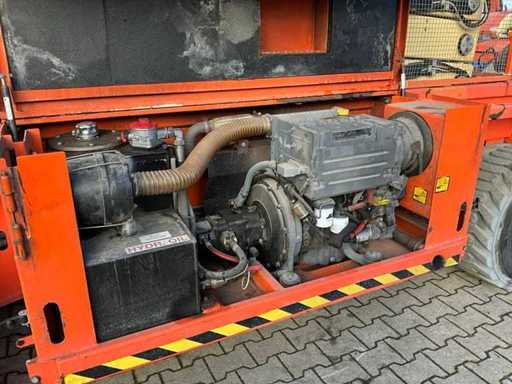 4x4 ; terrain accidenté ; Utilisation : En plein air ; hauteur du plancher du quai 19500 mm ; une plateforme extensible hydraulique d’environ 7000x2300 mm ; 4x pied à balancier hydraulique ; contrôle de cage ; Deutz D2011L03I moteur diesel ; hauteur de transport 2800 mm ; conditions de travail ;