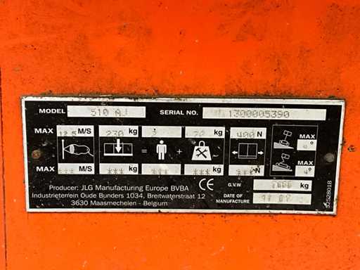 Plateforme aérienne JLG 510 AJ de l’année 2007. La machine fonctionne bien. Voir les photos pour plus de détails.
