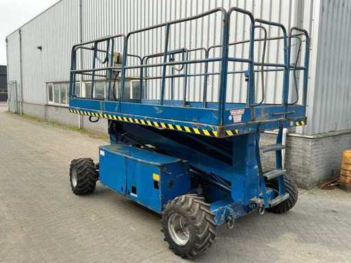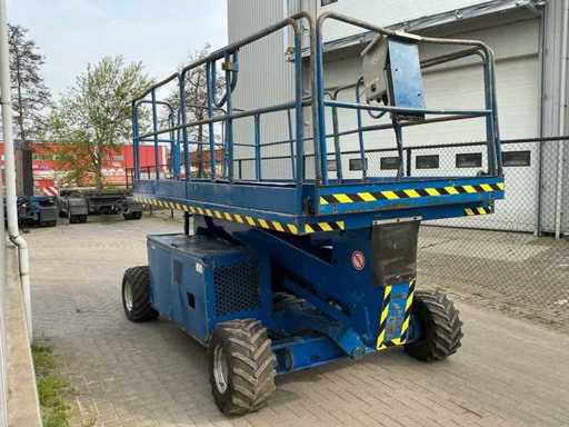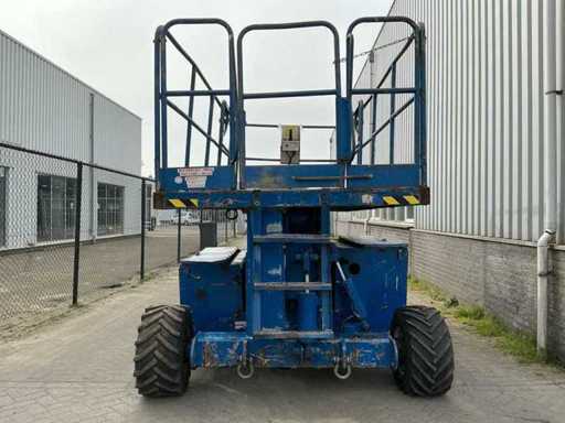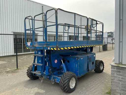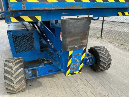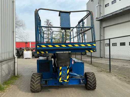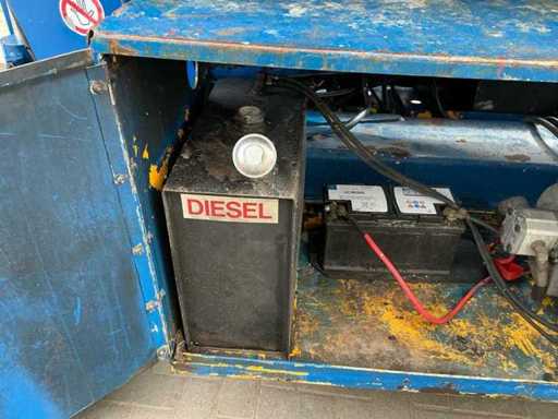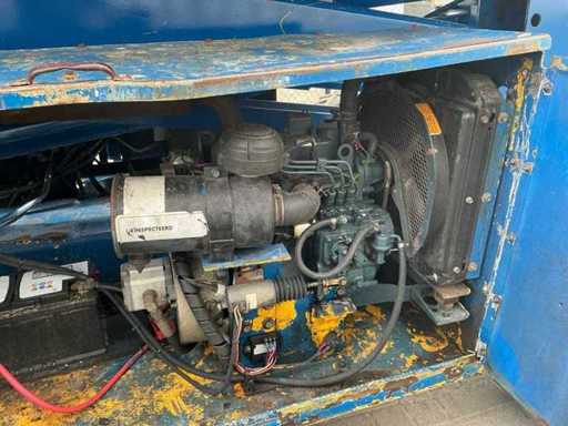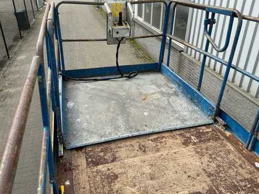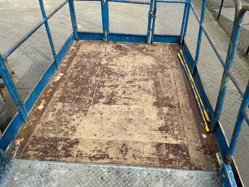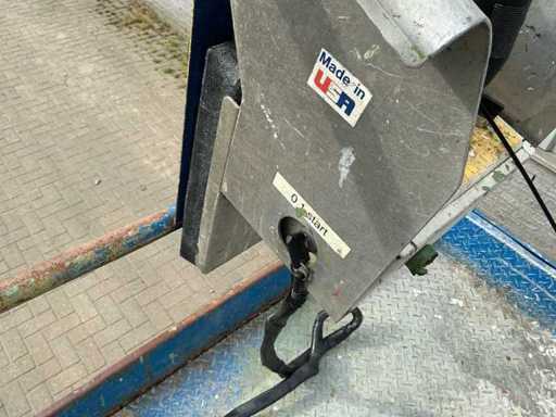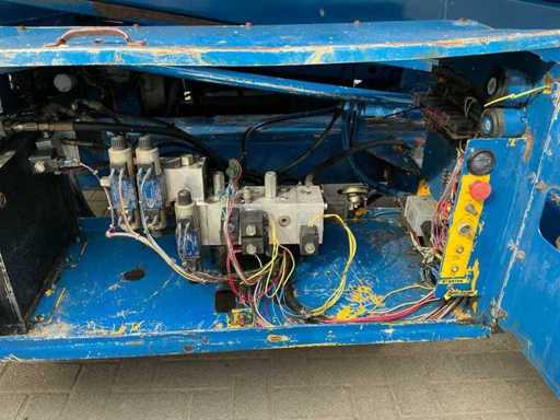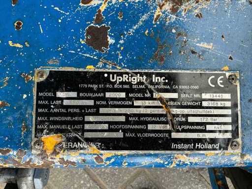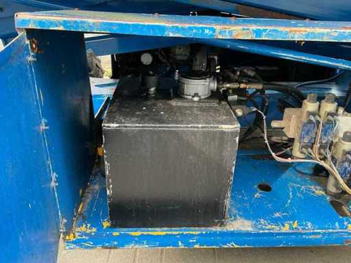 Équipé de : inclinable de l’avant vers l’arrière et de gauche à droite, élévateur ciseaux UpRight SL26SL (2000) avec une hauteur de travail de 8 m, une capacité de levage de 680 kg, une capacité de 5 personnes, un moteur de 13 kW, un poids propre de ±3168 kg et une pression hydraulique de 172 bars. charge maximale de travail 680 kg, plateforme extensible jusqu’à 5160 mm,