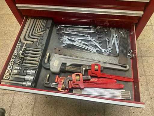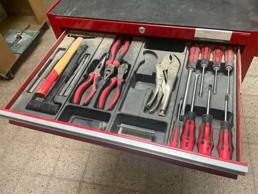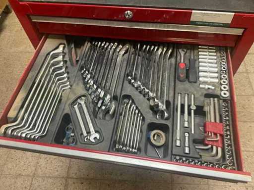 Avec un contenu incluant divers outils, dont des coupe-fils, des tournevis, des lots de clés à anneaux/douilles, des jeux de mèches, des torx, des clés Allen, des limes, des marteaux, des clés anglaises/clés à poignée, des perceuses, etc.