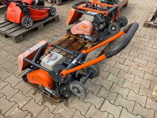 support rabattable ; jeu de roues ; tapis en caoutchouc ; Application : Compactage du sol / stollen / sable / cloches / pierre naturelle ; 4 ch ; support de levage ; ne fonctionnant pas ;