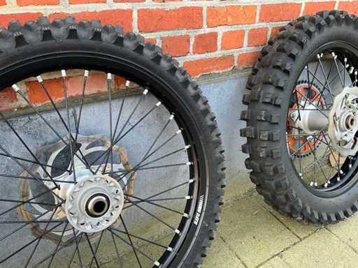 Pneus Michelin 90/90-21 avant. Pneu arrière de la Mira’s 120/90-18