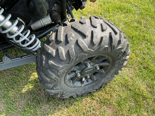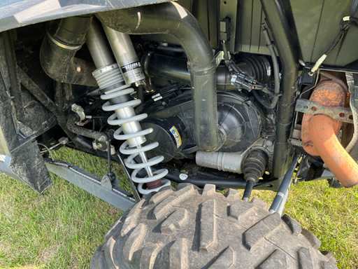 Treuil construit - pare-brise en verre + essuie-glace - pneu de secours - glacière à l’arrière - projecteur à l’avant - barre de remorquage incluse