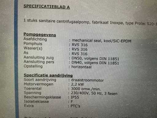 Pompe Prolac S-20 Inoxpa