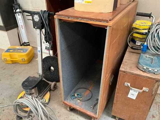 Équipé de différentes bandes de ponçage par lots, d’un moteur électrique, d’un meuble de rangement en bois