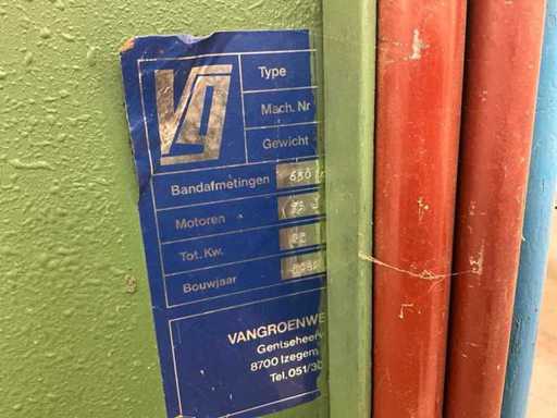 Équipé d’une double bande ponçable, d’un tapis roulant à rouleau, d’une table de travail 600x2000 mm, +3x carton avec bandes ponçables, sans plus d’informations