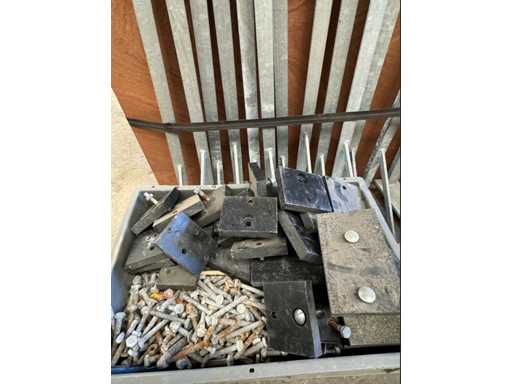 20 m linéaire composé de 4 x 1 m et 8 x 2 m (avec 2 portes), plus les 4 coins, et 25 pieds avec un kit de fixation (boulons et vis)