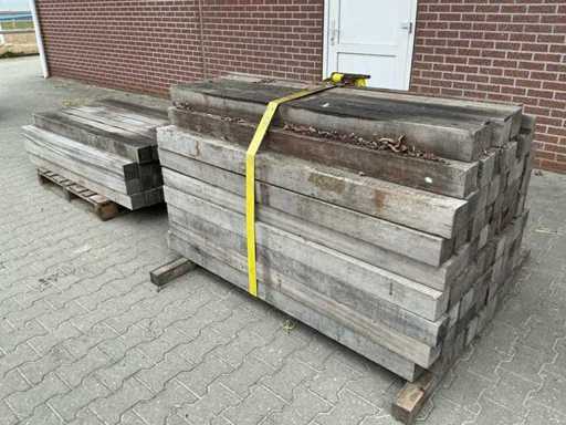 109 pièces de poteaux de jardin en bois dur. Taille de tête 95x95mm. Longueur : 159,5 cm.