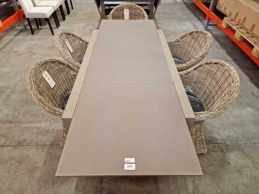 Garden Prestige - Table de jardin Alu extensible Lisbon Champagne mat 152-228 x 90cm + Verre trempé taupe - Verre gravé contre les rayures - Facilement extensible