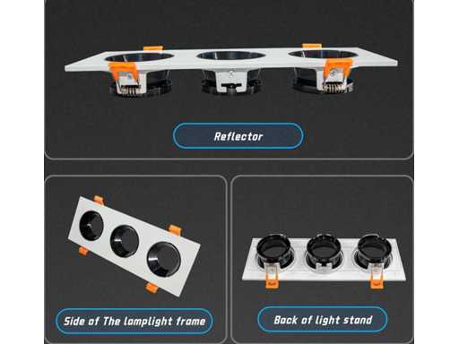 20 x Tache encastrée (EP-3) - Réglable - GU10 - Blanc/noir - Tache encastrée (EP-3) - Anneau intérieur réglable Aable - Couleur du produit : noir/blanc. - Adapté à l’intérieur - Degré de protection : IP20 - Dimensions : L 257 x H 93 x H 33 mm - Dimensions d’installation : L 235 x F 75 mm - Connexion : GU10 - Garantie : 2 ans - Anti-reflet - Compatible avec MR16-GU10 - Lampes non incluses