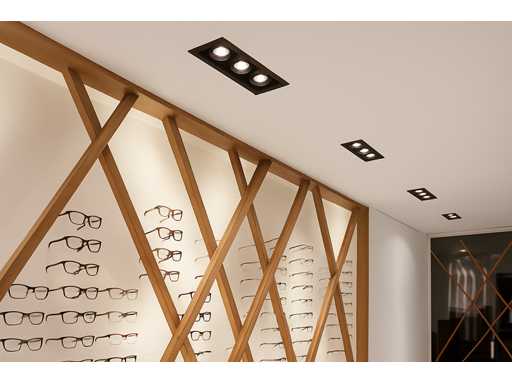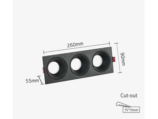 40 x projecteur encastré (EP-3) – Rotatif – Base : GU10 – Compatible avec MR16-GU10 – Couleur : Noir – Anneau intérieur réglable – Dimensions : 257 x 93 x 33 mm – Dimensions encastrées : 235 x 75 mm – Degré de protection : IP20 (usage intérieur) – Design antireflet – Garantie 2 ans – Ampoules non incluses.