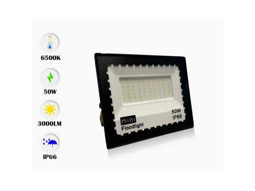 Projecteur LED 50W MINI – 6500K Cold White – IP65 étanche (x12)