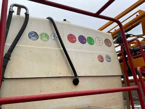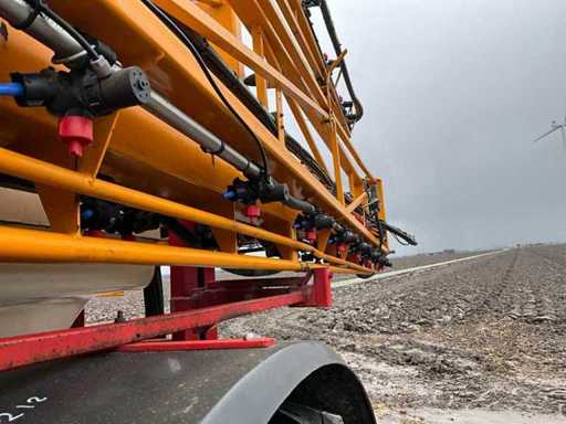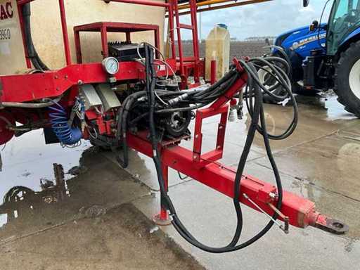 Nettoyant pour fûts ; Contrôle de l’équilibre hydrique ; Ajustement de hauteur hydrique ; Hydr.in et dépliable ; Essieu freiné ; Ordinateur de pulvérisation ; roues dirigées ; Électr./ Hydr.contrôle ; - Boucle d’induction ; 4 porte-capuchons ling, verrouillable à air ; Sélections en 2003 et 2004 ; configuration de perche 36/45 mètres ; Articulation de direction ; espacement de 50 cm des capuchons ; 9 sections commutables ; Capsule de bord électrique ; Pompe à membrane d’aspiration double, entraînée par PTO ; Inspection jusqu’en mars 2026