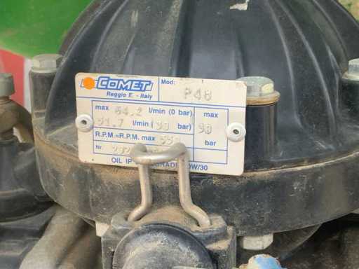 Réservoir en plastique 340 litres (max 8 bar), pompe Comet P48 30 bars.