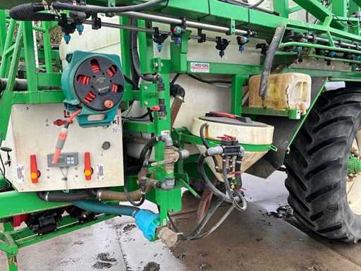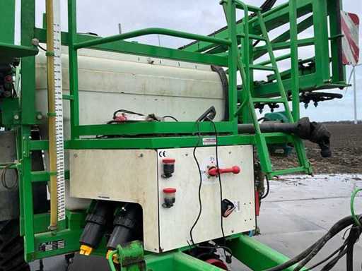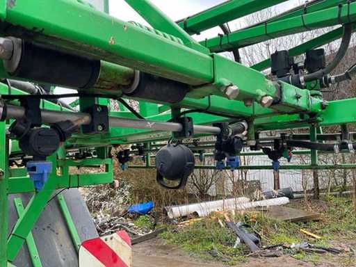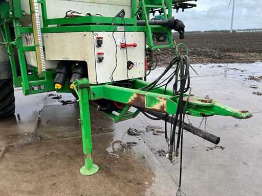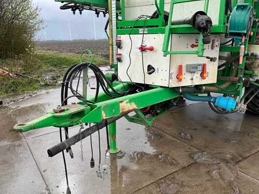 Équipé d’un nettoyant pour fûts ; Réservoir d’eau propre ; Contrôle de l’équilibre hydrique ; Ajustement de hauteur hydrique ; Hydr.in et dépliable ; Essieu freiné ; Ordinateur de pulvérisation ; roues dirigées ; Électr./ Hydr.contrôle ; ordinateur de pulvérisation Muller Basic ; joystick Muller ; Articulation de direction ; Remplissage du plateau de mélange ; 2 pompes à membrane d’aspiration, en bon état ; 13 sections ; les buses 05 et 03 ; 3 Porte-casquette Ling