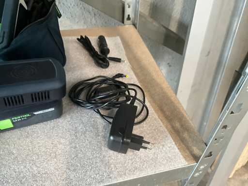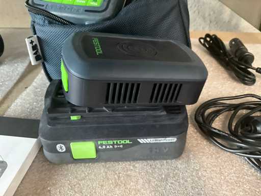 Radio sysrock BR10 DAB+ avec Bluetooth, équipée d’un câble de charge et d’une station de charge avec batterie Festool 4.0 Ah et d’une mallette de transport pour radio.
