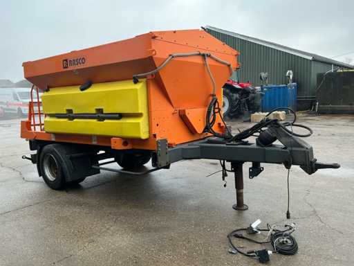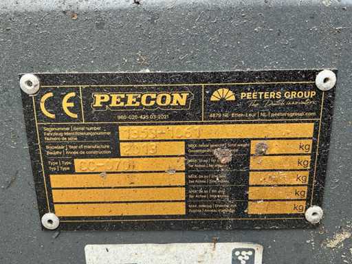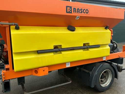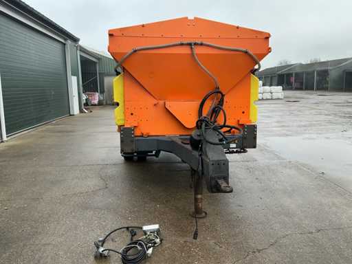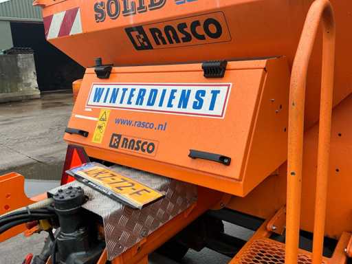 Équipé de : Il s’agit d’un étaleur Rasco Solid X 4.0 VP5 sel et sable de 4 m³ sur une remorque Peecon GC-070 (construite en 2013) avec entraînement hydraulique, réservoir de saumure et contrôle électrique. Écarteur Rasco Solid X 4.0 VP5 (4 m³, 1492 kg, entraîné hydrauliquement avec une largeur de 2 à 12 m, adapté au sel/sable/saumure et électriquement alimenté depuis le véhicule) monté sur un châssis Peecon GC-070 (année 2015, châssis 1 essieu de 7 tonnes avec œil de remorquage K80 et châssis galvanisé lourd). L’écarteur Rasco Solid X 4.0 VP5 sur le train d’atterrissage Peecon GC-070 mesure environ 4,8 à 5,2 m de long, 2,1 à 2,3 m de large, 2,0 à 2,4 m de haut, pèse environ 2 200 à 2 500 kg à vide et atteint un poids total d’environ 5 000 à 5 500 kg une fois complètement rempli. Immatriculation néerlandaise : LKZ-72-F