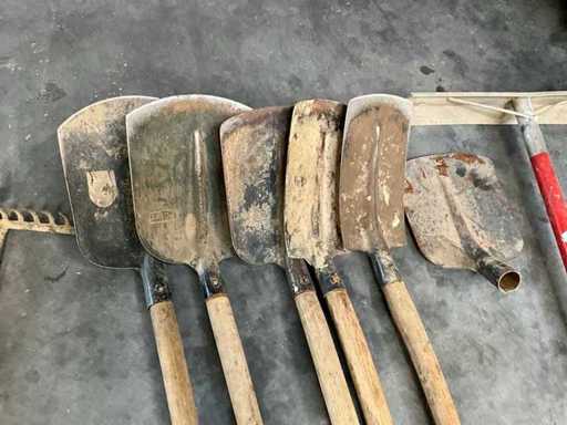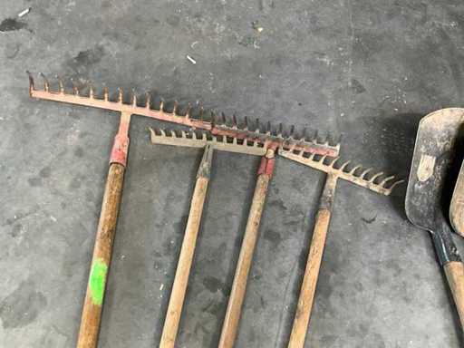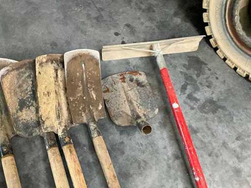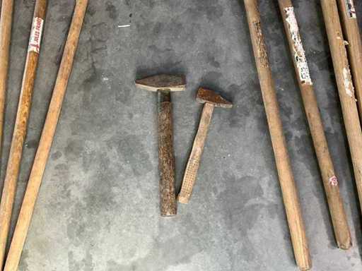 Un lot mixte d’outils manuels, proposés en un seul lot. Idéal pour le jardinage, le travail au sol et le pavage. Il se compose de plusieurs poignées avec attaches et de marteaux à choc/de rue. Visible dans le destin : Plusieurs râteaux (largeurs différentes) Divers modèles de rue/chauve-souris et pelles à pelle Outils de revêtement / broussage et fer à gratter / poignardage 2 marteaux (y compris le marteau pour chaussée/carreaux) Outil à poignée extra-longue (poignée laquée rouge) État : utilisé avec une usure normale, rouille et signes d’usure