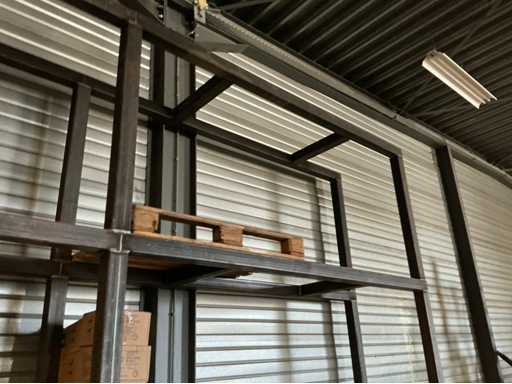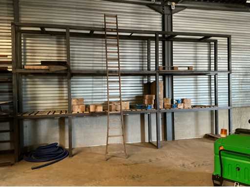 Ce rayonnage à palettes mesure 6m70 de large, 3m70 de haut et 80cm de profondeur (CECI est vendu sans contenu)