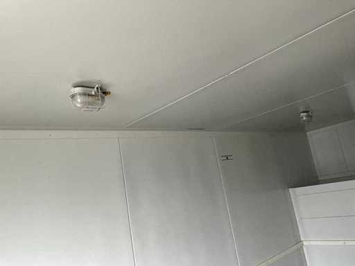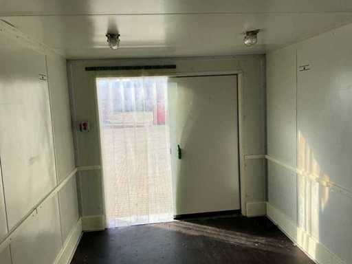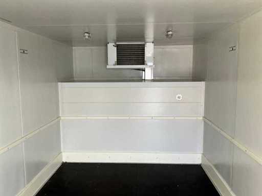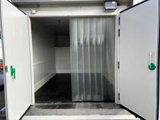 châssis en acier ; épaisseur de paroi de la chambre froide : 120 mm ; dimensions intérieures utilisables : 4450x2750x2250 mm ; porte double de chambre froide extérieure ; panneau de contrôle ; évaporateur et compresseur de réfrigération ; 400 volts - 32 ampères ; des grilles de ventilation en acier inoxydable ; serrures à torsion ; conditions de travail ; L’acheteur doit s’occuper lui-même de son transport et de l’ouvrir du camion avec grue de chargement