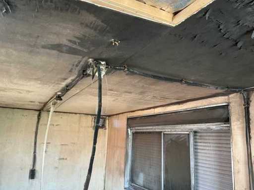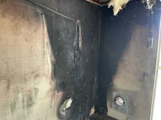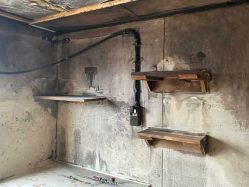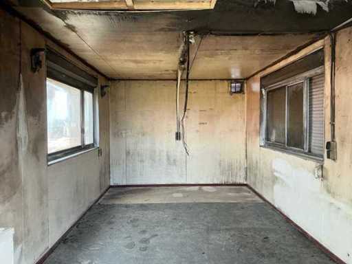 Refuge sur chantier avec dégâts d’incendie